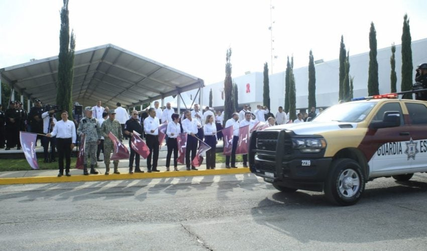 Durante el evento, en el Complejo Estatal de Seguridad Pública, el gobernador dio el banderazo a 14 vehículos blindados tipo Mamba y 15 camionetas pick up Ram 2500, para fortalecer el despliegue operativo de la corporación.