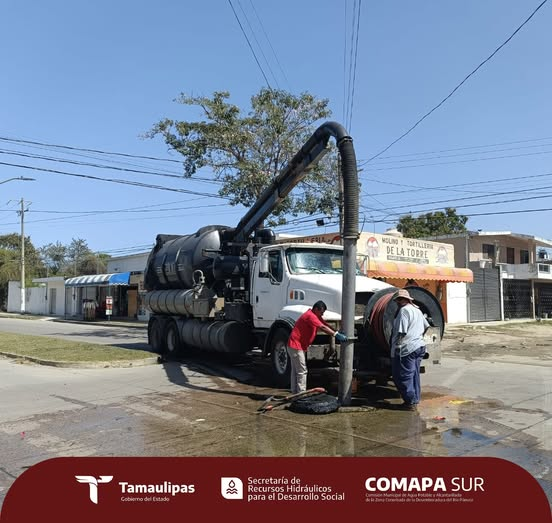 Sondeo y limpieza de línea general de drenaje en calle 7, Col. Enrique Cárdenas González.